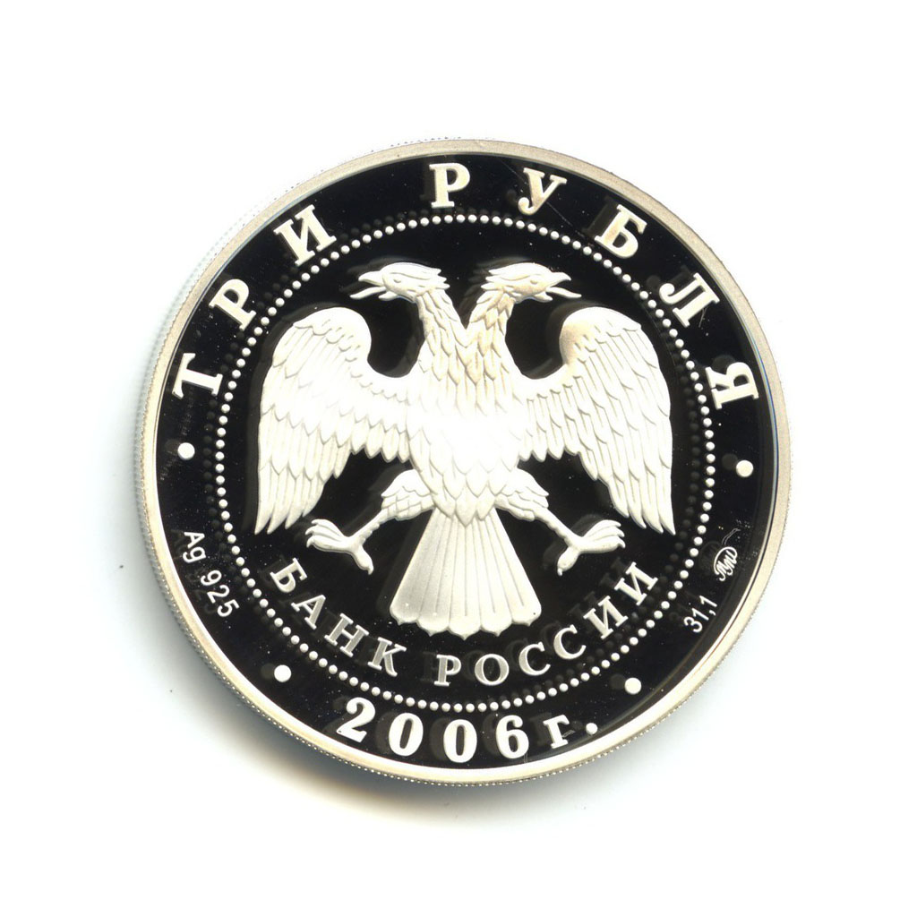 Динамика цен по монете 3 рубля 2006 ММД „Год собаки“ PROOFCобакаСерия: Лунный календарь Аверсв центре диска — эмблема Банка России (двуглавый орел с опущенными крыльями, под ним надпись полукругом «БАНК РОССИИ»), обрамленная кругом из точек и надписями по кругу: вверху — «ТРИ РУБЛЯ», внизу — «2006 г.», слева — обозначение металла, проба сплава, справа — содержание драгоценного металла в чистоте и товарный знак монетного двора.Реверсв круге, обрамленном сплошным ободком, слева — изображение головы собаки, справа — матированное изображение полумесяца.Каталожные номера