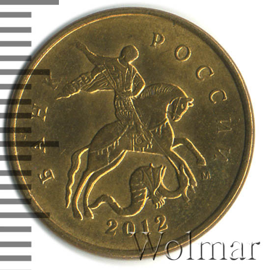 Динамика цен по монете 10 копеек 2012 М AU10 копеек образца 1997 годаСерия: Регулярные монеты Начиная со второй половины 2006 года монета Банка России номиналом 10 копеек изготавливается из стали, плакированной с обеих сторон сплавом меди желтого цвета (томпак). Монета обладает ферромагнитными свойствами. Графическое оформление, цвет и размеры монеты сохранены без изменений. С 2015 года монета Банка России номиналом 10 копеек изготавливается как из плакированной сплавом томпак стали, так и из стали с латунным гальваническим покрытием. Графическое оформление и массогабаритные параметры монеты из стали с латунным гальваническим покрытием сохранены без изменений. Монета обладает ферромагнитными свойствами. Монета, изготавливавшаяся ранее из латуни, продолжает оставаться законным средством наличного платежа на территории Российской Федерации. Аверс— в центре — рельефное изображение Георгия Победоносца верхом на коне, поражающего копьем змея;— справа внизу, под передним копытом коня — буквы: М (Москва) или С-П (Санкт-Петербург), обозначающие монетный двор-изготовитель; — вверху по окружности слева направо — надпись, разделенная фигурой Георгия Победоносца: «БАНК РОССИИ»; — внизу, под изображением змея — год чеканки. Реверс— в центре (ближе к правому краю) — обозначение номинала монеты: цифра 10, под ней — слово «КОПЕЕК», расположенное горизонтально;— в нижней части диска — стилизованный растительный орнамент в виде двух ветвей. АвторыМонетный двор: Московский монетный двор (М) Спецификации