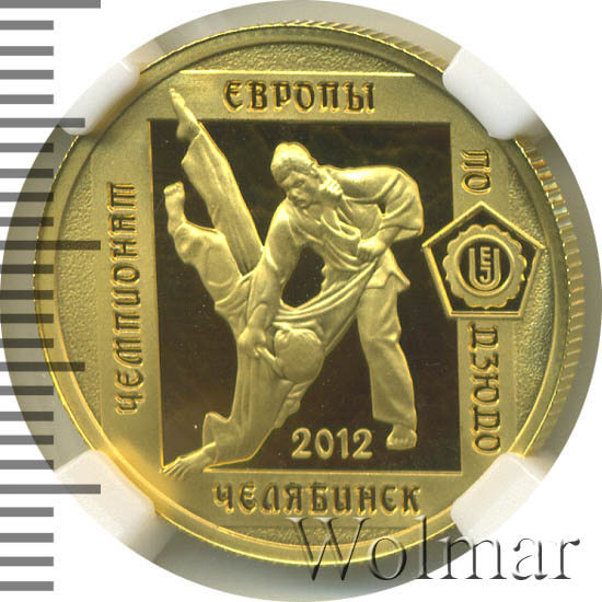 Динамика цен по монете 50 рублей 2012 ММД „Чемпионат Европы по Дзюдо. Челябинск“ PROOFЧемпионат Европы по дзюдо, г. ЧелябинскДата выпуска: 20.03.2012 Датой зарождения дзюдо считается май 1882 года. В это время в токийском буддийском храме Эйсёдзи 21-летний японец Дзигоро Кано основал школу под названием «Кодокан». Дзюдо было сформировано на основе дзю-дзюцу (искаж. «джиу-джитсу»), которое в свою очередь берет истоки из древней формы национальной борьбы сумо. Дзю-дзюцу (искусство мягкости) зародилось как система ведения борьбы без оружия. В 1886 году дзюдо было признано на государственном уровне и стало преподаваться в военных и полицейских академиях, а вскоре вошло в программу физической подготовки средних и высших учебных заведений. В 1889 году Кано развернул просветительскую деятельность в Европе, лично открыв первую школу во Франции. Вскоре дзюдо пришло в Великобританию. В июле 1951 года была основана Международная федерация дзюдо, ее президентом был назначен сын Дзигоро Кано, Рисэй. В 1956 году в Токио прошел первый чемпионат мира, в котором принял участие 31 представитель из 21 страны. В 1964 году дзюдо вошло в программу Олимпийских игр. Женское дзюдо обязано своим появлением супруге Дзигоро Кано. Первый чемпионат мира среди женщин прошел в 1980 году, а в Олимпийских играх дзюдоистки принимают участие с 1992 года. В Японии дзюдо регулярно занимается около 8 миллионов человек, в остальном мире — более 20 миллионов. По количеству «посвященных» дзюдо уступает только футболу. На сегодняшний день членами Международной федерации дзюдо являются 178 стран. В состав Европейского союза дзюдо входят 50 национальных федераций по этому виду спорта. Примерно столько же государств ежегодно делегируют своих спортсменов на чемпионаты Старого света среди мужчин и женщин. До 2010 года в каждой весовой категории к участию допускался только один человек от страны. Однако, начиная с 2012 года, в чемпионатах континента в каждом весе могут бороться по два участника из одной национальной команды. Соревнования сильнейших дзюдоистов Старого света состоятся в апреле 2012 года в Челябинске на площадке ледовой Арены «Трактор». За право принимать континентальный чемпионат боролись также Рим, Будапешт и Стамбул. Челябинская область впервые будет принимать официальный международный старт такого уровня. Более того, чемпионаты Европы по дзюдо ни разу не проводились в истории новой России. В СССР чемпионат Старого света по дзюдо проводился только один раз — в 1976 году в Киеве, а последнее крупное состязание по этому виду спорта — чемпионат мира — состоялся в 1983 году в Москве. 30 июня 2011 года жители Челябинска народным голосованием выбрали символ чемпионата Европы по дзюдо — 2012. Им стал тигренок «Жорик». Прототипом послужил настоящий амурский тигр по кличке Жорик, которого жители Челябинска общими силами спасли от гибели. При разработке художественного оформления реверса золотой монеты номиналом 50 рублей в качестве основного изображения была выбрана скульптура заслуженного скульптора России Виктора Митрошина, установленная перед Центром олимпийской подготовки по дзюдо в г. Челябинске. Источники: www.judo.ru/, eurojudo2012.ru/ Аверсв центре диска — эмблема Банка России (двуглавый орел с опущенными крыльями, под ним — надпись полукругом «БАНК РОССИИ»), обрамленная кругом из точек и надписями п