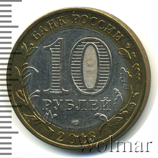 Динамика цен по монете 10 рублей 2013 СПМД (Гурт от 25 рублей (180 рифлений)) „Республика Северная Осетия–Алания“ AU |