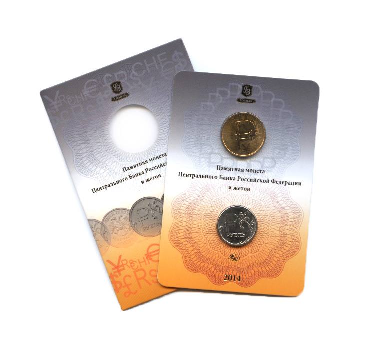 283 проходаЮбилейный набор 2014 ММД (Буклет) „Юбилейный набор «Символ Рубля»: 1 монета + жетон“. |
