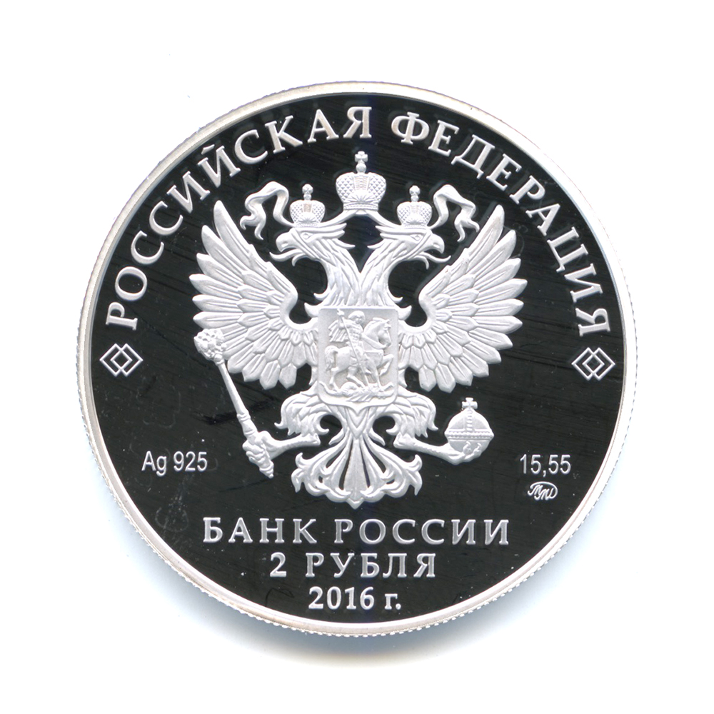 Писатель Н.М. Карамзин, к 250-летию со дня рождения (12.12.1766)Серия: Выдающиеся личности России Николай Михайлович Карамзин (1766−1826) ‑ знаменитый писатель и историк, родился в селе около Симбирска в семье помещика. Образование получил в Москве, в пансионе И.М. Шадена, по окончании которого поступил на военную службу в Преображенский гвардейский полк. В 1789—1790 гг. Карамзин путешествует по Европе, встречается с известными культурными и политическими деятелями. В результате этой поездки были написаны знаменитые «Письма русского путешественника». Вернувшись в Москву, Карамзин начинает издавать «Московский журнал», в котором среди других произведений писателя была опубликована повесть «Бедная Лиза», имевшая большой успех и ставшая первым произведением в русской литературе, написанным в стиле сентиментализма, главной чертой которого является внимание к чувствам людей независимо от их положения в обществе. Карамзин много сделал для развития русского литературного языка, освободив прозу от обветшалых архаичных форм, выработав легкую изящную интонацию фразы, обогатив словарный запас. С начала 1800-х годов Карамзин всё больше времени посвящает изучению истории России, в журнале «Вестник Европы» выходят его первые исторические очерки. В 1803 году он получает официальное звание придворного историографа и начинает работу над самым значительным своим сочинением — «Историей государства Российского». 11 томов были изданы дважды уже при жизни автора (оба тиража были раскуплены), 12-й вышел в свет после смерти Карамзина. «История государства Российского» многократно переиздавалась в XIX и XX веках и до сих пор не утратила своей ценности. В 1818 году, после выхода первых томов «Истории государства Российского», Николай Михайлович Карамзин был удостоен звания почётного члена Императорской Академии наук. Источник: to-name.ru/biography/nikolaj-karamzin.htm Аверсна зеркальном поле диска — рельефное изображение Государственного герба Российской Федерации, над ним вдоль канта — надпись полукругом: «РОССИЙСКАЯ ФЕДЕРАЦИЯ», обрамленная с обеих сторон сдвоенными ромбами, внизу под гербом: слева — обозначения драгоценного металла и пробы сплава, справа — содержание химически чистого металла и товарный знак монетного двора, внизу в центре в три строки — надпись: «БАНК РОССИИ», номинал монеты: «2 РУБЛЯ», год выпуска: «2016 г.».Реверсна зеркальном поле диска — рельефный портрет Н.М. Карамзина, справа — изображение нескольких книг «Истории государства Российского», над книгами в две строки — даты «1766» и «1826», вверху вдоль канта — надпись: «Н.М. КАРАМЗИН».Каталожные номера