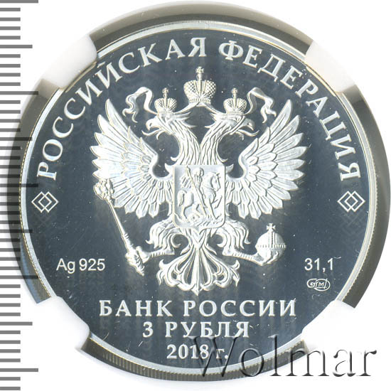 Динамика цен по монете 3 рубля 2018 СПМД „Ну, погоди!“ PROOFНу, погоди!Серия: Российская (советская) мультипликация «Ну, погоди!» — советский и российский мультипликационный сериал, первый выпуск которого вышел в 1969 году. Режиссером Геннадием Сокольским была снята пилотная серия о Волке и Зайце, выпущенную в рамках альманаха «Веселая карусель». Основную часть сериала снял Владимир Котеночкин на студии «Союзмультфильм», роли озвучили Анатолий Папанов и Клара Румянова. На протяжении каждого эпизода сериала Волк пытается поймать Зайца, но по разным причинам ему это не удается. Действие сериала происходит, как правило, в общественных местах и отображает характерные приметы советского социума. Аверсна зеркальном поле диска — рельефное изображение Государственного герба Российской Федерации, над ним вдоль канта — надпись полукругом: «РОССИЙСКАЯ ФЕДЕРАЦИЯ», обрамленная с обеих сторон сдвоенными ромбами, внизу под гербом: слева — обозначения драгоценного металла и пробы сплава, справа — содержание химически чистого металла и товарный знак монетного двора, внизу в центре — надпись в три строки: «БАНК РОССИИ», номинал монеты: «3 РУБЛЯ», год выпуска: «2018 г.».Реверсна зеркальном поле диска — цветное изображение сцены из мультфильма «Ну, погоди!», справа вверху — надпись: «НУ, ПОГОДИ!».Каталожные номера