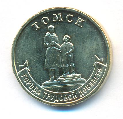 Динамика цен по монете 10 рублей 2024 ММД „Томск“ AUТомскСерия: Города трудовой доблести За значительный вклад жителей города в достижение Победы в Великой Отечественной войне 1941−1945 годов, обеспечение бесперебойного производства военной и гражданской продукции на промышленных предприятиях, проявленные при этом массовый трудовой героизм и самоотверженность г. Томску присвоено почетное звание Российской Федерации «Город трудовой доблести». В годы войны Томск принял и разместил более 30 эвакуированных предприятий и свыше 50 тысяч эвакуированных человек. Два десятка томских госпиталей уже в первые месяцы войны начали оказывать помощь раненым и за годы Великой Отечественной поставили на ноги более 100 тысяч человек. Томские предприятия производили двигатели для танков, самолетов и подводных лодок, противогазы, шпалы, манометры, бинокли, силовые и телефонные кабели. Спичечная фабрика изготавливала зажигательную смесь для противотанковых бутылок. На Томской швейной фабрике шили гимнастерки, солдатское белье, рукавицы и шинели. Каждая сороковая мина, выпущенная по врагу, была сделана в окрестностях Томска. И две трети извлеченных из земли мин и снарядов было обнаружено с помощью томских миноискателей. Источники: admin.tomsk.ru, Указ Президента РФ от 2 июля 2020 г. № 444 «О присвоении почетного звания Российской Федерации «Город трудовой доблести». Аверсобозначение номинала монеты «10 РУБЛЕЙ», внутри цифры «0» — скрытые, видимые поочередно при изменении угла зрения изображения числа «10» и надписи «РУБ», cлева и справа — стилизованные изображения ветви лавра и дуба соответственно, вдоль канта вверху — надпись «БАНК РОССИИ»,внизу — год выпуска «2024», справа от него — товарный знак монетного двора. Реверсрельефное изображение памятника «Женщине и подростку, ковавшим Победу в тылу»; по окружности — надписи, вверху: «ТОМСК», внизу, на ленте: «ГОРОДА ТРУДОВОЙ ДОБЛЕСТИ».Каталожные номера