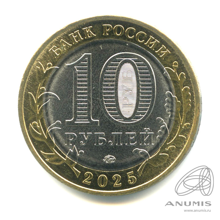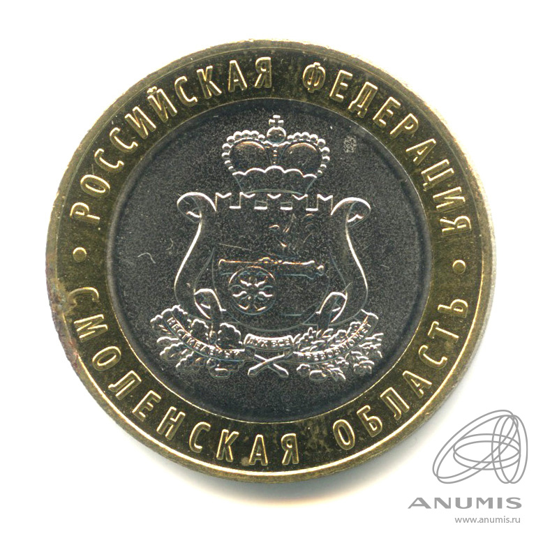 Динамика цен по монете 10 рублей 2025 ММД „Смоленская область“ AUСмоленская областьСерия: Российская Федерация Смоленская область расположена в центральной части Восточно-Европейской (Русской) равнины. На западе граничит с Республикой Беларусь. Административным, промышленным и культурным центром области является город Смоленск — один из древнейших городов России (известен с середины IX века). Промышленность (производство готовых металлических изделий, химических веществ и продуктов, резиновых и пластмассовых изделий) является одним из основных секторов экономики области. Источники: www.admin-smolensk.ru, www.mid.ru Аверсна диске в центре — обозначение номинала монеты «10 РУБЛЕЙ», внутри цифры «0» — скрытые, видимые поочередно при изменении угла зрения изображения числа «10» и надписи «РУБ», внизу — товарный знак монетного двора; на кольце вверху — надпись «БАНК РОССИИ», внизу — год «2025», слева и справа — изображения ветвей лавра и дуба, элементы которых переходят на диск.Реверсрельефное изображение герба Смоленской области; на кольце по окружности — рельефные надписи, разделенные точками: в верхней части — «РОССИЙСКАЯ ФЕДЕРАЦИЯ», в нижней части — «СМОЛЕНСКАЯ ОБЛАСТЬ».Каталожные номера
