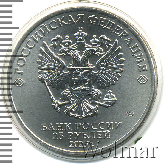 ЛокомотивСерия: Российский спорт Общественная организация «Российское физкультурно-спортивное общество «Локомотив» является общественным объединением, созданным в целях развития физической культуры и спорта на железнодорожном транспорте, на предприятиях транспортно-строительного комплекса, предприятиях метрополитена, железнодорожных учебных заведениях и других предприятиях, связанных с железнодорожной отраслью. Первое сообщение о создании общества появилось 3 ноября 1935 года на страницах газеты «Красный спорт». В нем говорилось, что на железнодорожном транспорте создается единое добровольное спортивное общество железнодорожников «Локомотив». Уже 5 декабря 1935 года был утвержден устав нового спортивного общества, а указанием Наркомата путей сообщения день 12 января 1936 года был объявлен днем официального рождения спортобщества «Локомотив». Ежегодно РФСО «Локомотив» проводит на всей территории страны от Калининграда до Сахалина не менее 10 всероссийских соревнований и 200 региональных, в которых участвуют более 15 тысяч спортсменов-железнодорожников и членов их семей. В настоящее время под брендом «Локомотив» выступают семь клубов: футбольный клуб «Локомотив» (Москва), хоккейный клуб «Локомотив» (Ярославль), баскетбольный клуб «Локомотив-Кубань» (Краснодар), мужской волейбольный клуб «Локомотив» (Новосибирск), женский волейбольный клуб «Локомотив-Калининградская область» (Калининград), пляжный футбольный клуб «Локомотив» (Москва) и регбийный клуб «Локомотив-Пенза» (Пенза). Источник: www.rfsolokomotiv.ru Аверсрельефное изображение Государственного герба Российской Федерации, над ним вдоль канта — надпись полукругом «РОССИЙСКАЯ ФЕДЕРАЦИЯ», обрамленная с обеих сторон сдвоенными ромбами, под гербом в центре в три строки — надпись «БАНК РОССИИ», номинал монеты «25 РУБЛЕЙ», год выпуска «2025 г.», справа — товарный знак монетного двора.Реверсвыполненное в цвете изображение символики Российского физкультурно-спортивного общества «Локомотив»; вверху по окружности — рельефная надпись «ЛОКОМОТИВ».Каталожные номера