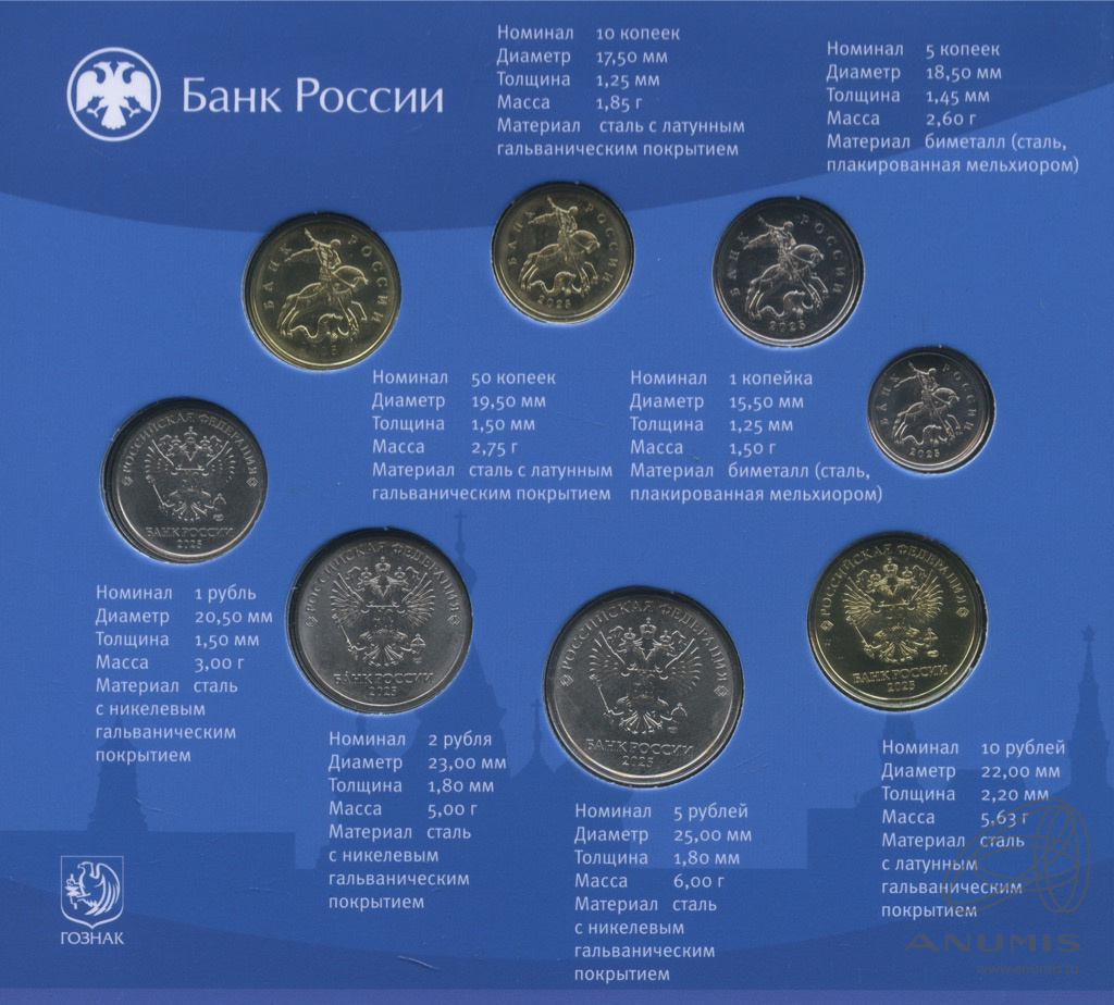 1 проходГодовой набор 2025 СПМД (Буклет) „Годовой набор «Монеты Банка России»: 8 монет (Гознак)“. |