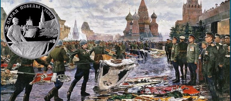21 апреля 1995 года в серии «50-летие Победы в Великой Отечественной войне» вышла памятная монета «Парад Победы в Москве (Флаги у Кремлёвской…