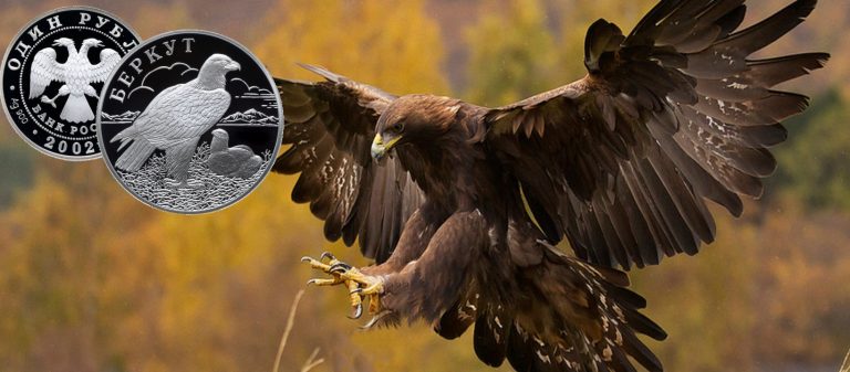 17 октября 2002 года Банк РФ выпустил в обращение памятную монету «Беркут» из серии «Красная книга». Описание монеты СПМД отчеканил 1 рубль…