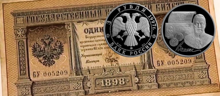 29 августа 1997 года Банк России выпустил в обращение две памятные монеты из драгоценных металлов в честь 100-летия эмиссионного закона Витте. Описание…