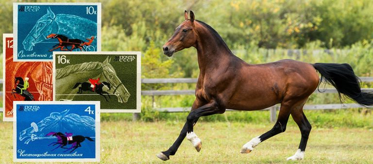 Советские марки с изображением лошадей появились еще до Великой Отечественной войны. На миниатюре из серии «Всесоюзная сельскохозяйственная выставка» художники показали гордую голову…