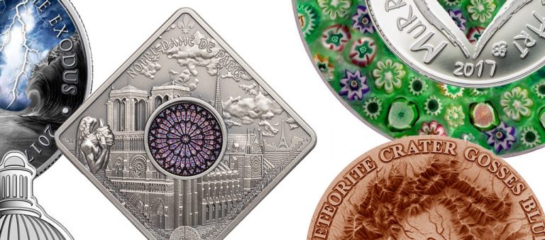 Редкие металлы, 3D эффекты, нестандартные формы и инкрустации — мы с интересом следим за новинками нумизматики. Давайте вспомним необычные выпуски монетных дворов…